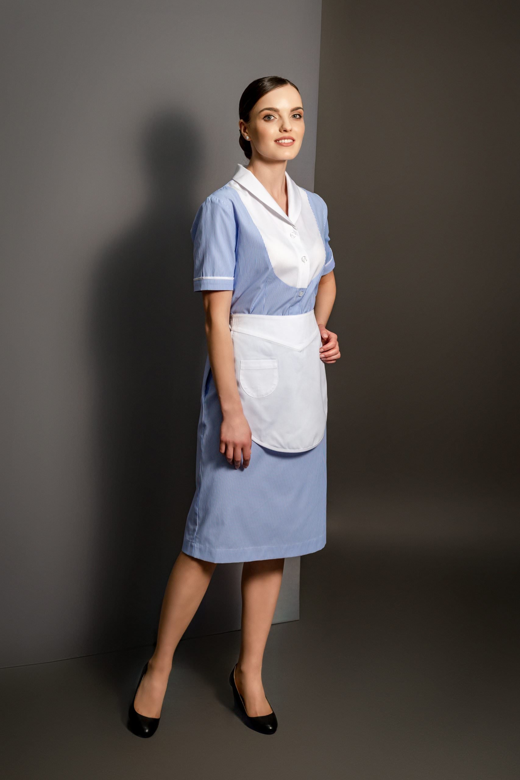 - Sewed up back slit, 1 hidden side pocket