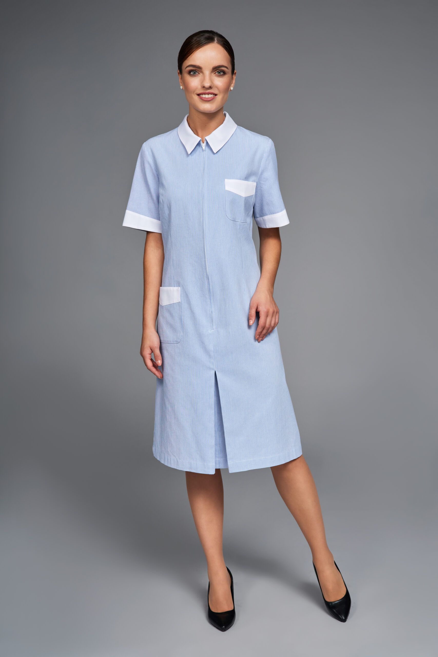 - Tasca sul petto sul lato sinistro e tasca sulla gonna sul lato destro